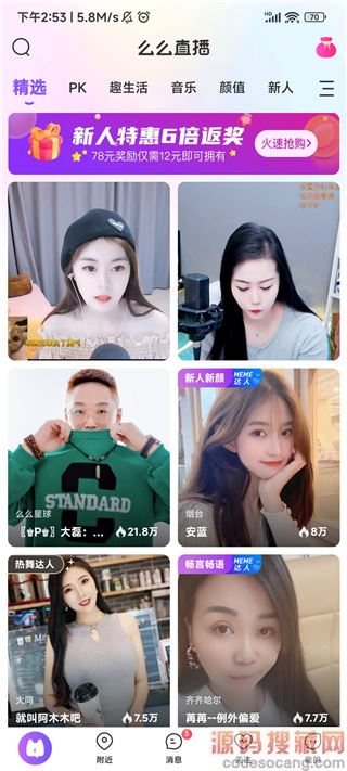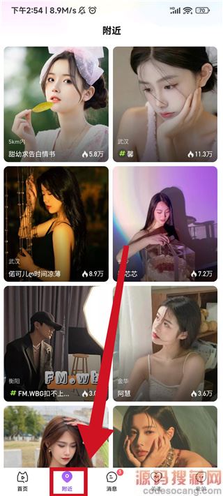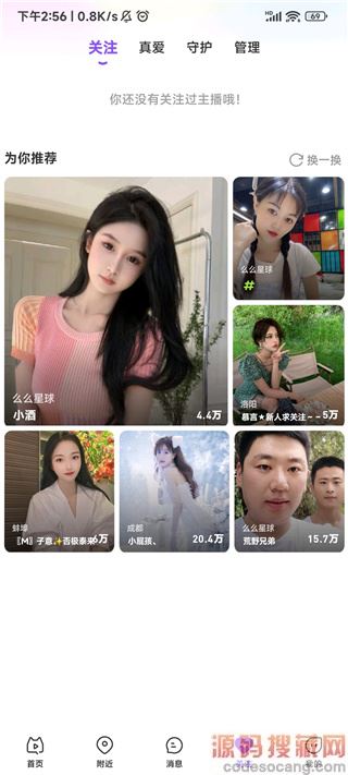 4、我们点击附近就可以看到自己附近的主播,点击进入他们的直播间观看;