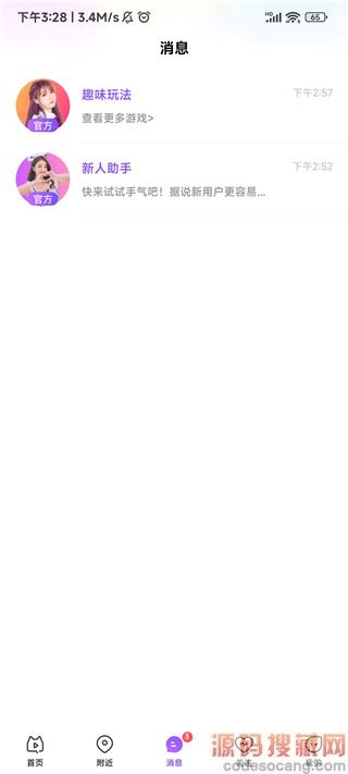 5、点击消息,这里有新人助手给新用户发来的通知信息,之后和主播的聊天也可以在这里找到;