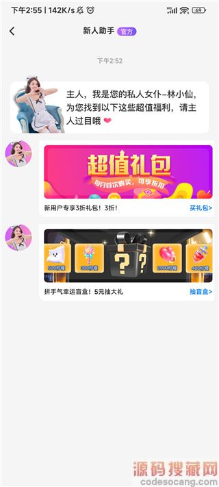 6、打开消息后可以看到现在新人还有超值礼包和幸运盲盒;