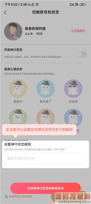 11、再往下还可以设置你在神行百变状态下的昵称;