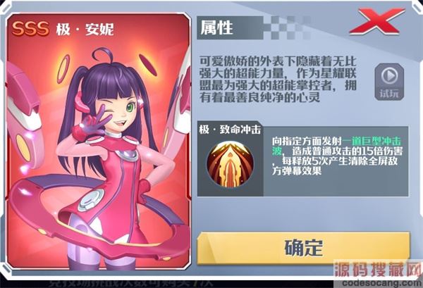 (像指定方向发射巨型冲击波,普攻15倍伤害,每5次清一次全屏敌方弹幕,5阶25倍伤害,土豪专属)