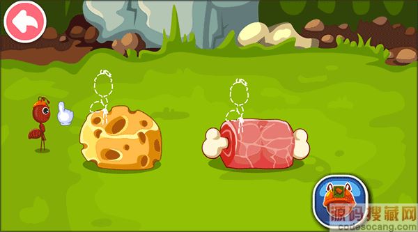 7、现在我们将蚂蚁拖到食物的相应位置;