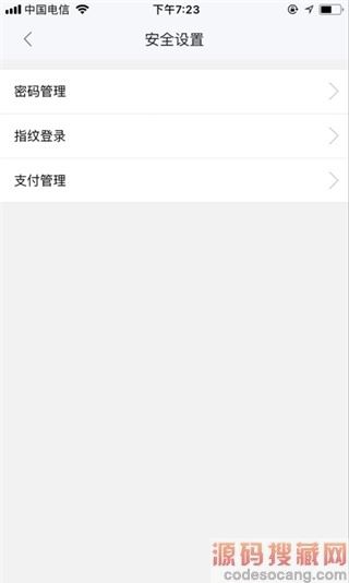 3、登录之后点击安全设置,在安全设置里有三项管理,分别是密码管理、指纹登录、支付管理。