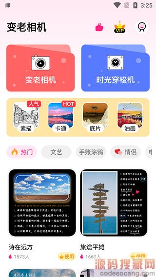 2、首页可以选择各种特效,变老相机、时光穿梭机、素描等多种特效。