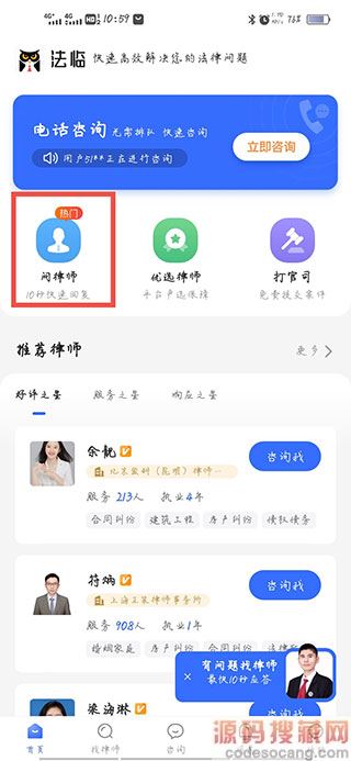 2、在首页选择找律师。