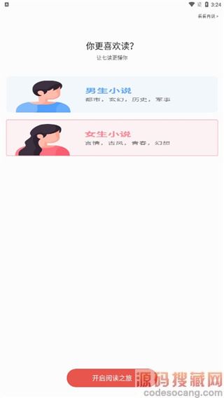 1、下载软件之后,根据自己的爱好选择,然后点击开启阅读之旅;