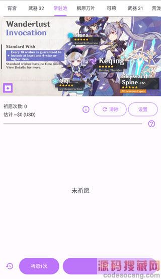 1、在本站下载安装好原神抽卡模拟器最新版后,打开进入选择,上方可以切换选择你想要抽卡的类型。