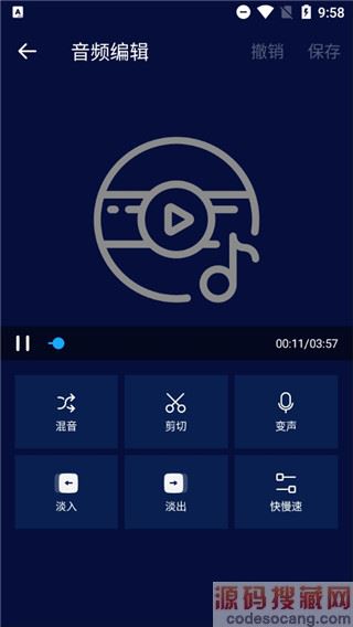 2、音频编辑:支持音频混音、变音、淡入淡出、快慢速等功能