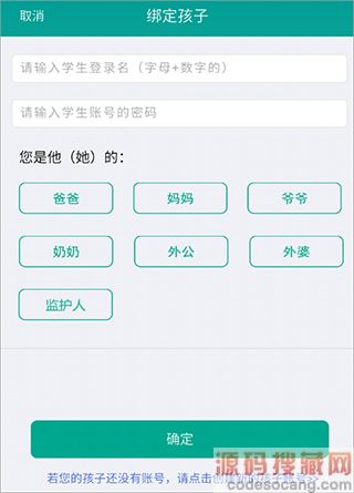 2、点击绑定孩子,填写您的基本信息,点击“确定”按钮完成绑定。