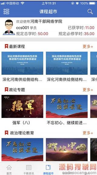3、进入系统,点击“课程超市”,进入后选择感兴趣的课程,进行学习。
