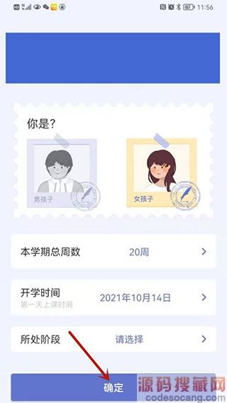 1、先从本站下载八点课程表APP,然后再打开打开,如图所示,进行总周数、开学时间等设定,然后点击“确定”进入新页面