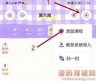 3、进入新页面后,如图,先点击红箭头1所示位置,然后再点击“添加课程”进入新页面