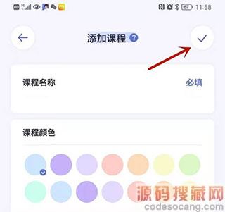 4、进入新页面后,进行课程名称、上课周数等设定后,点击红箭头所示位置,完成课程添加