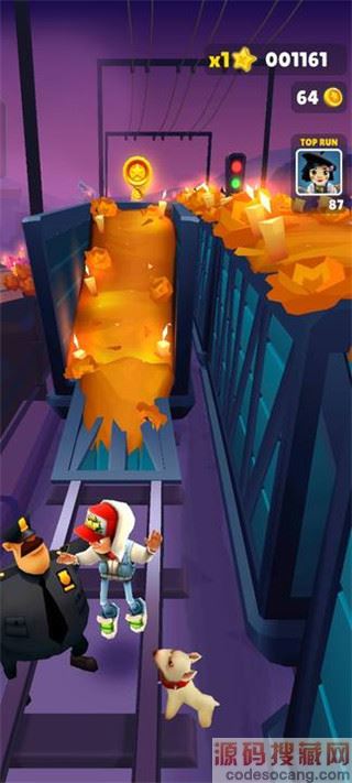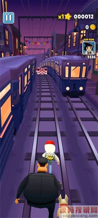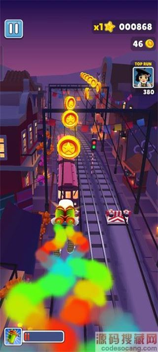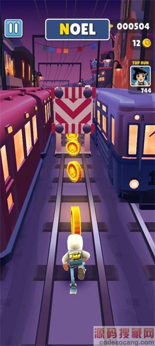 3、玩家可以搜集金币,通过跳跃、下滑、左右移动来躲避障碍物和迎面而来的地铁。