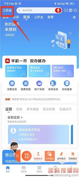 1、下载登录赣服通学生缴费平台app,在首页中右上角切换地区;