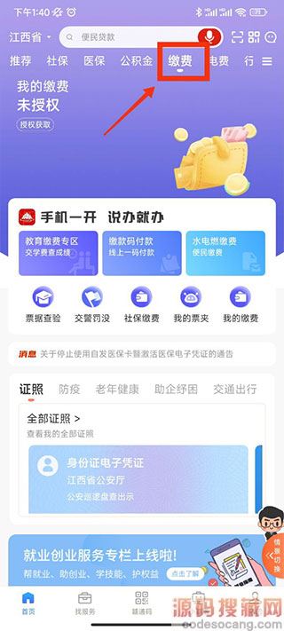 2、在首页选择缴费栏;