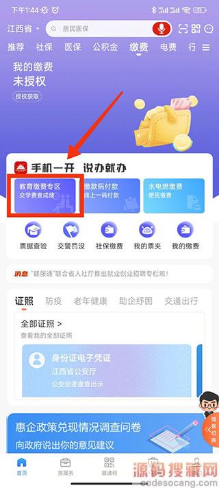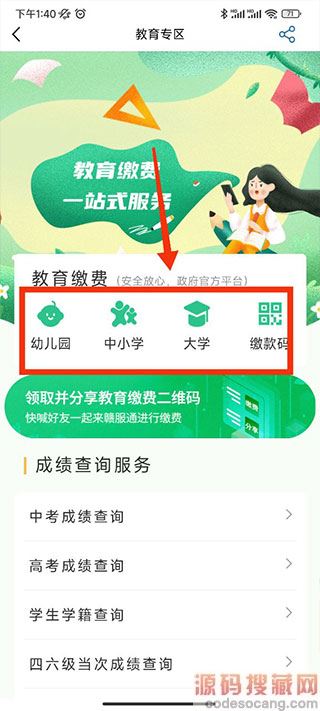 3、可以看到下方有教育缴费专区,点击进入;