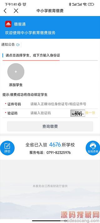 6、点击添加学生或是在下方输入学生的身份证号并输入验证码,查看缴费;
