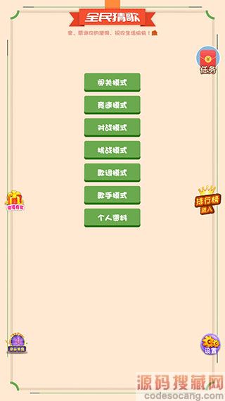 1、进入全民猜歌赚钱小游戏之后,我们就可以在主界面看到各个模式和功能的入口。