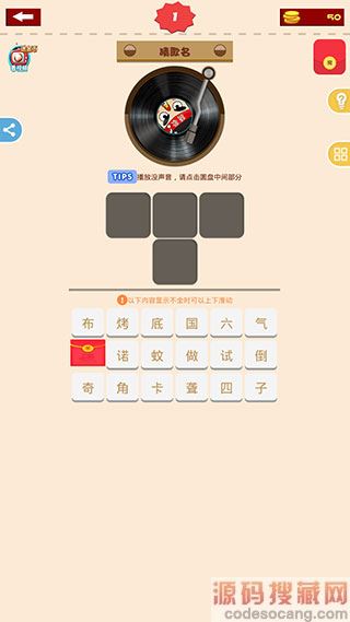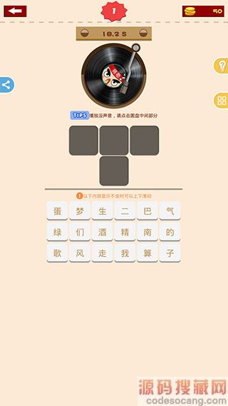5、【歌词模式】:根据歌词猜出歌名,每过一关奖励100金币,游戏中每隔10分钟奖励100金币,回答错误一次扣除50金币,每过5关奖励一个红包。