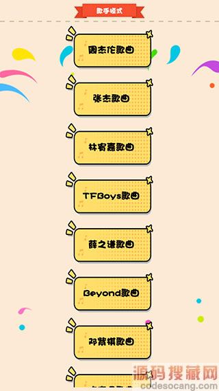 6、【歌手模式】:进入歌手模式之后,我们猜歌的曲库都会从该歌手的作品中进行随机选择,目前支持的歌手有周杰伦、张杰、林宥嘉、TFBoys、薛之谦、Beyond、邓紫棋等。