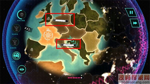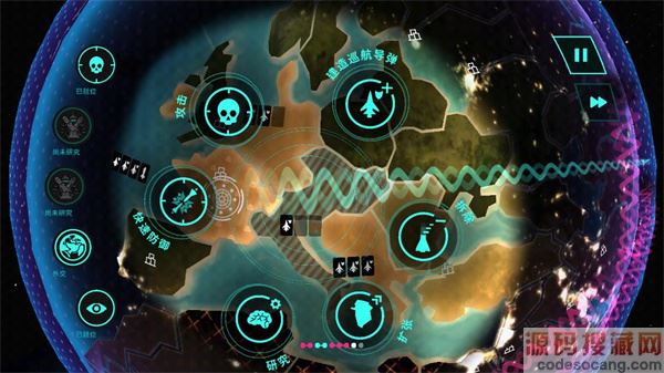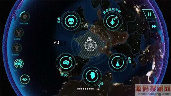 4、放大视图,点击地球上的其余势力,玩家可以选择直接攻击、研究、扩张拆除以及建造导弹等操作;