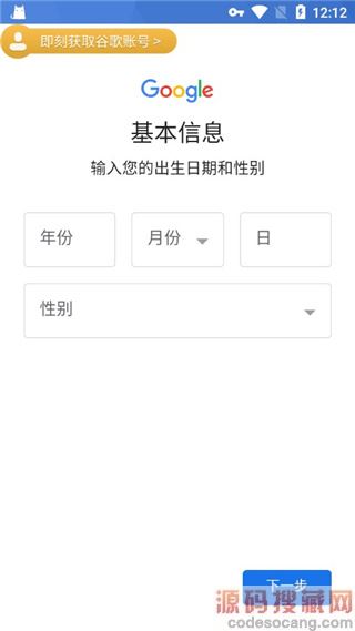 8、填写出生日期和性别,这里要注意,我们一定要选择18岁以上的年龄,成年即可,填好点下一步;