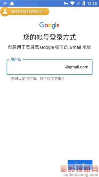 9、选择gmail地址,我们选一个系统推荐的即可,记得截屏哦,这个是我们登录的谷歌账号,选好点下一步;