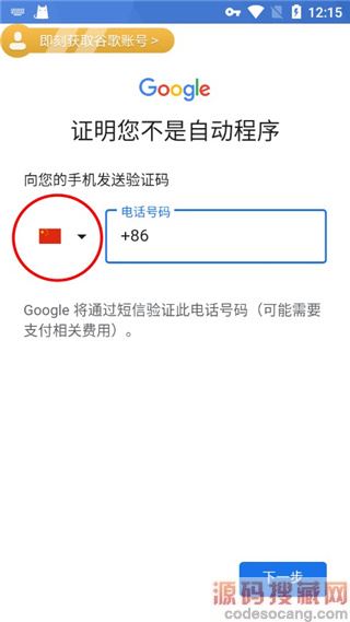 11、验证手机号,国家我们要选择中国,填写自己的手机号,点击下一步;