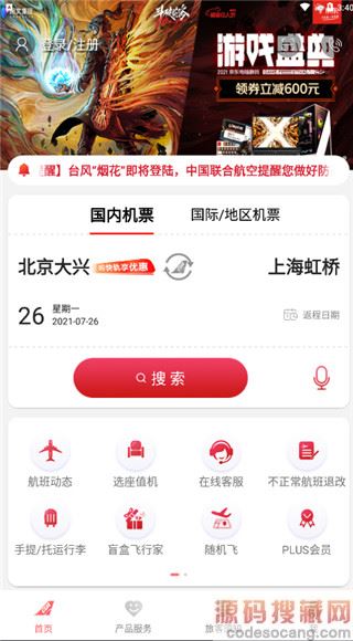 3、选择航班起始地和起飞日期,搜索航班