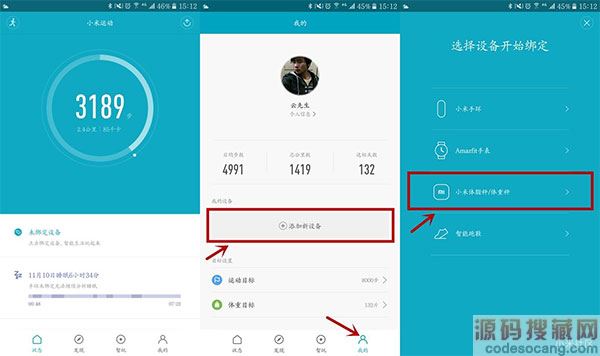 3、确保小米体脂秤有电的情况下,点击“我的”界面->选择“添加新设备”->“体脂秤/体重秤”,然后双脚站上秤,如提示发现体脂秤时,请选择“是的”,您就可以成功绑定小米体脂秤;