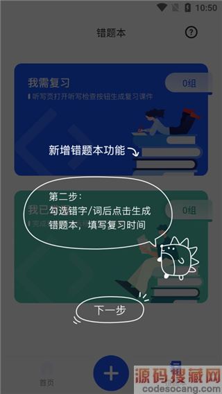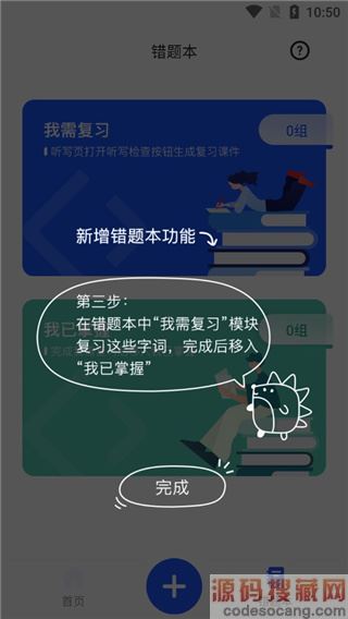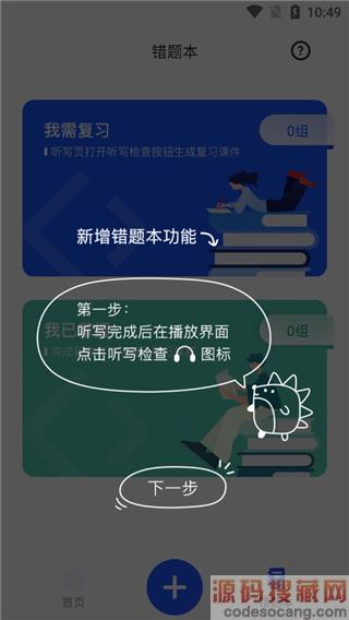6、返回首页进入错题本板块,这里是新增的功能,听写完成后在播放界面检查耳机图标;