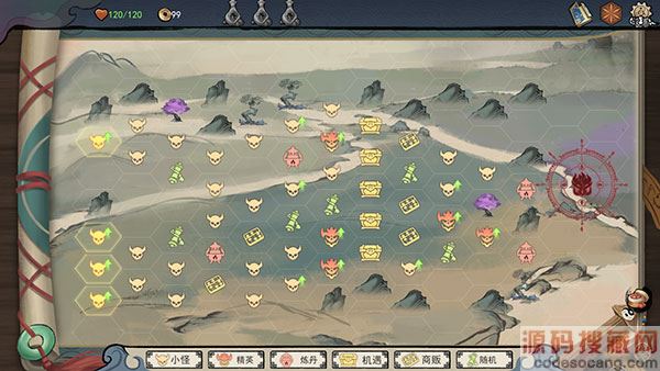 冒险的进度是从左到右的,地图中的每个图标都代表了一种事件。