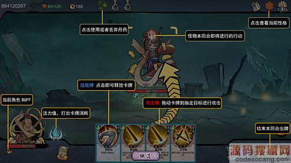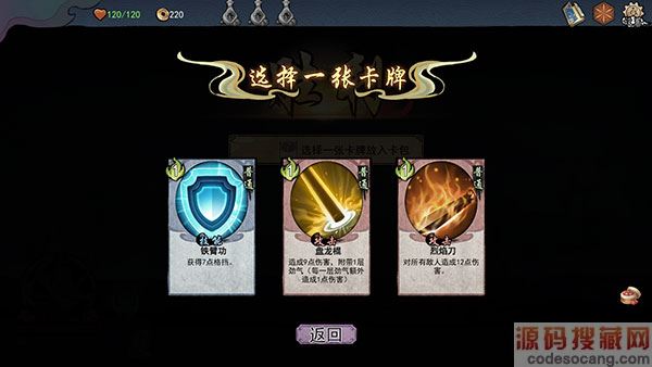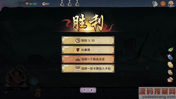 每次战斗胜利都可以获得随机奖励,如铜钱、卡牌、丹药等。