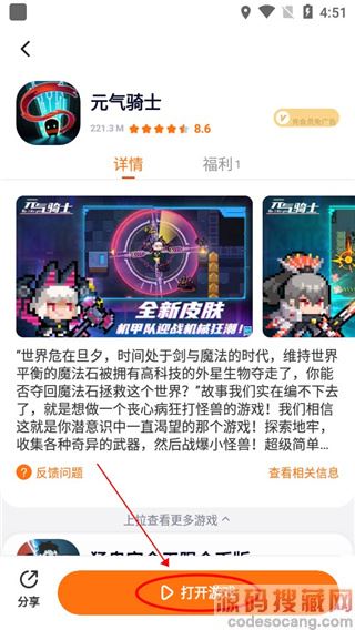 2、任意选择一款游戏,以元气骑士为例,进入游戏界面后直接点击开始游戏即可畅玩;