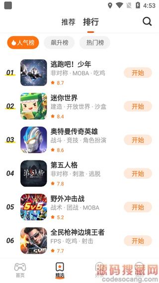 4、甚至更可以在排行榜单当中选择游戏进行畅玩;