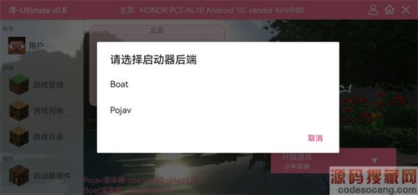2、然后需要取一个名字,再进入游戏,选择一个启动器后端;