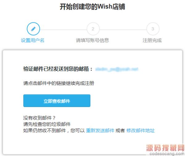Wish将发送验证邮件至您注册时使用的邮箱,请您点击“立即查收邮件”。