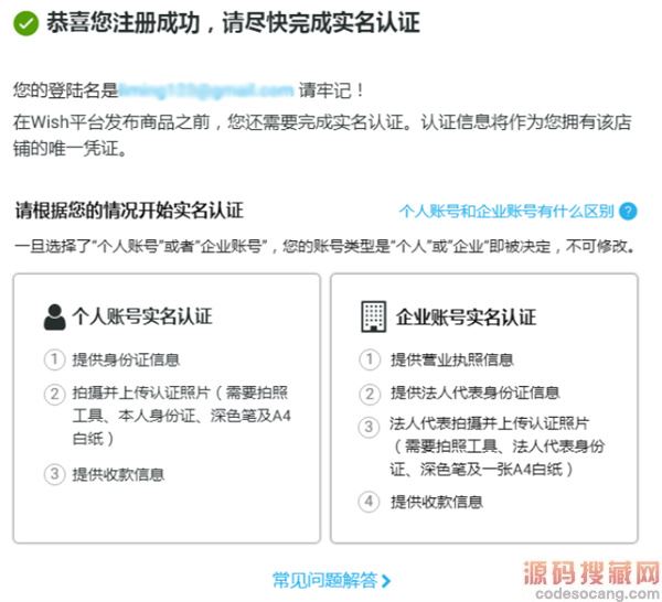 请选择您的Wish账号类型“个人”或者“企业”,可通过“个人账号和企业账号有什么区别”来了解更多信息。