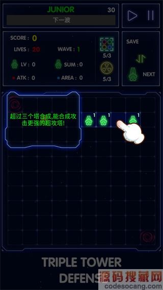 4、超过三个塔进行合成,能够合成攻击更强的超攻塔;