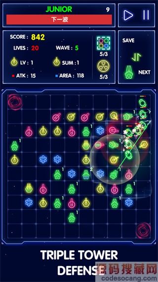 6、玩家可以自由放置这些塔,这些塔不仅仅可以进行合成,还可以作为障碍物,影响怪的行进路线;