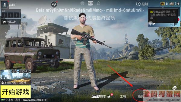 1、点击绝地求生体验服手机版主界面中的【任务】。