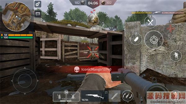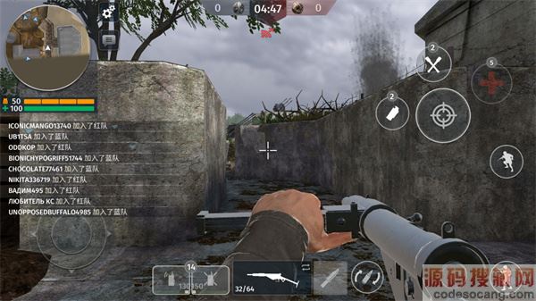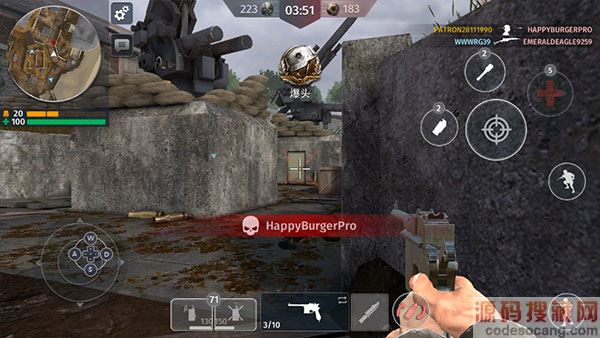 3、进入游戏后,操作非常简单,左边控制移动方向,右边控制射击、开镜、换弹等等;