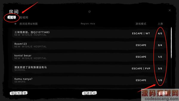 2、在【房间】中,我们可以看到其他玩家所创建的房间,任意点击一个房间即可与其他游戏玩家共同畅玩。