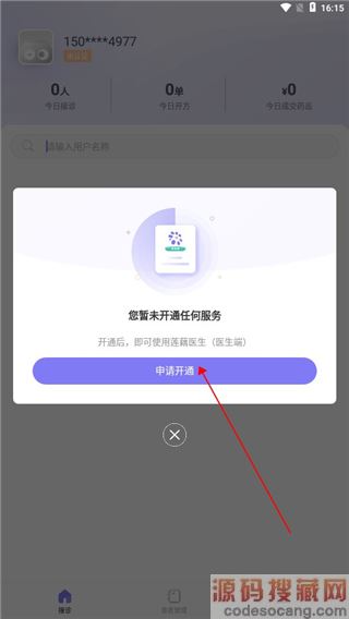 1、在本站下载安装并打开莲藕医生医生端app,登陆后进入软件点击申请开通业务。