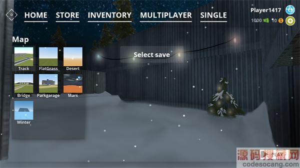 1、进入游戏,从左到右依次是主页(home)、商店(store)、仓库(inventory)、多人游戏(multiplayer)、单人游戏(single)五个;