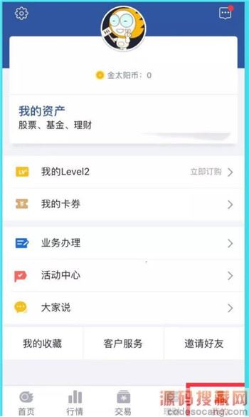 点击手机屏幕下方“交易”菜单,输入资金账号和密码即可登录
