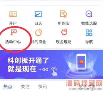 在登录页“我的”菜单,可快速进入活动中心、客户服务以及业务办理(如风险测评和开通科创板、港股通)