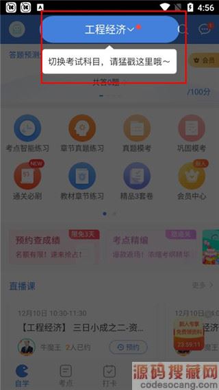 2、想要切换考试项目,可以点击顶部