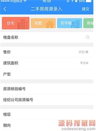 3、点击“房源管理”进入页面,点击右上角“笔形”标签录入二手房房源